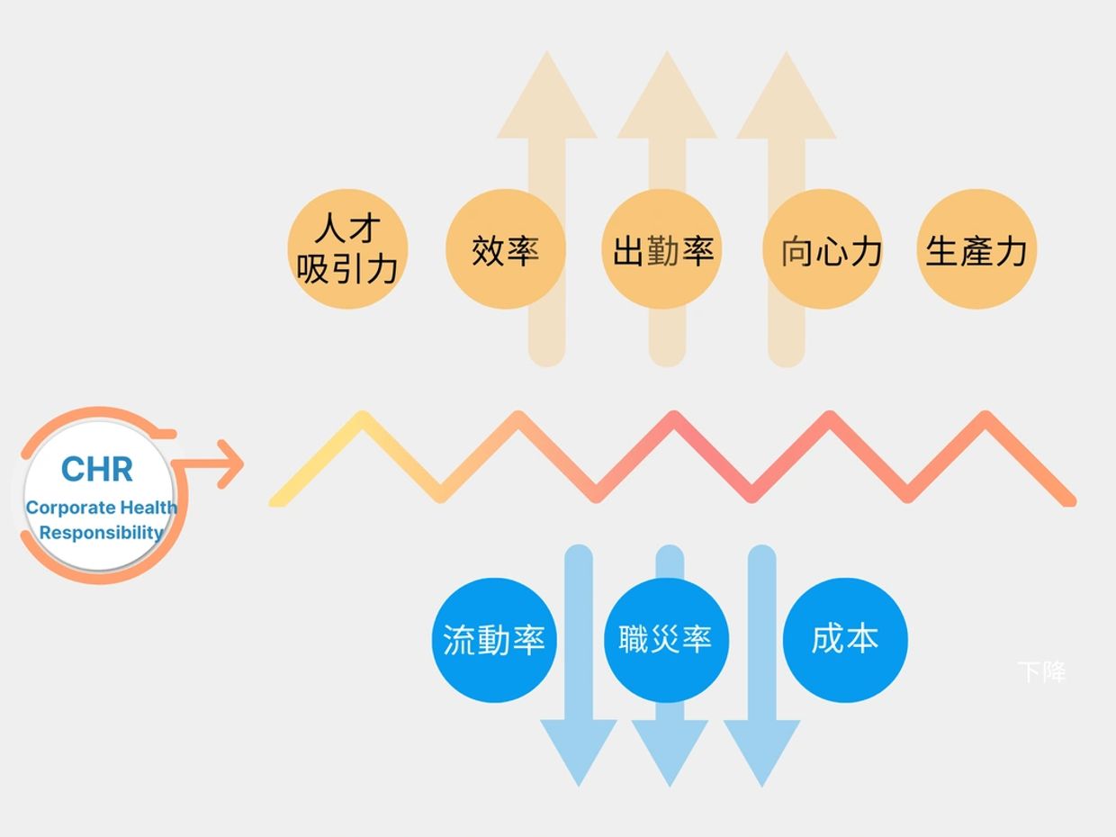 除了傳遞健康知識的演講活動,在建立健康意識之餘,增加能夠融入日常工作和生活的運動頻率,正確的營養和作息方案實踐,與建置員工健康管理系統,是企業以CHR概念,展現企業競爭力的的實際作為。